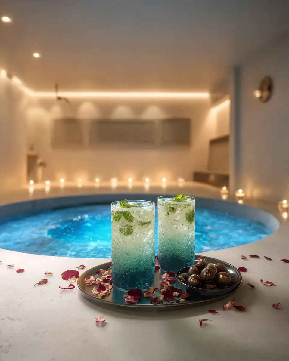 Steam, soak, swim, cool‑down and mask up. Feeling peckish? Order food and non-alcoholic drinks directly in your spa.